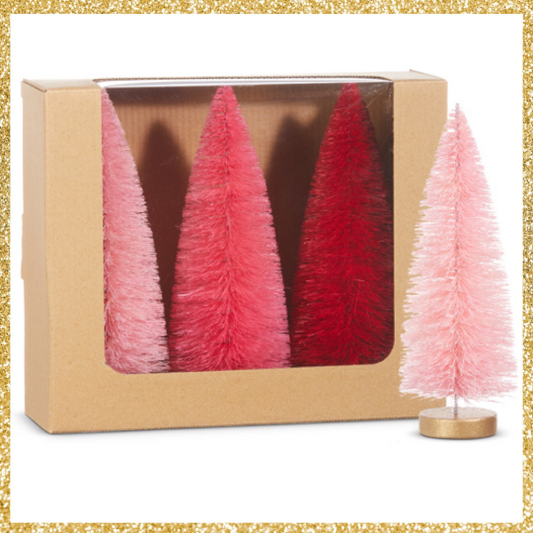 Pink Bottle Brush Trees Box of 3 Pink Christmas Decorations