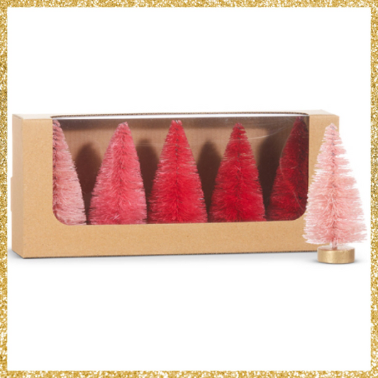 Pink Bottle Brush Trees Box of 5 Pink Christmas Decorations