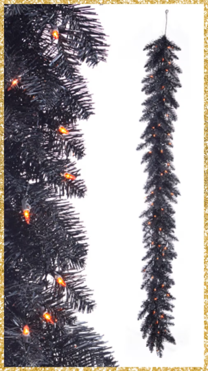 Prelit Halloween Black Tinsel Garland 6' Black Halloween Garland