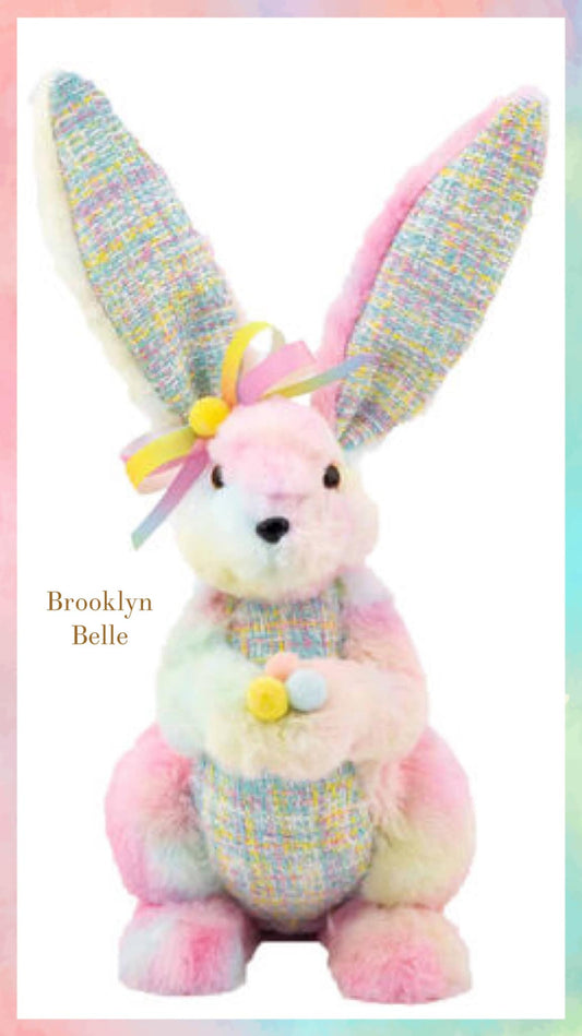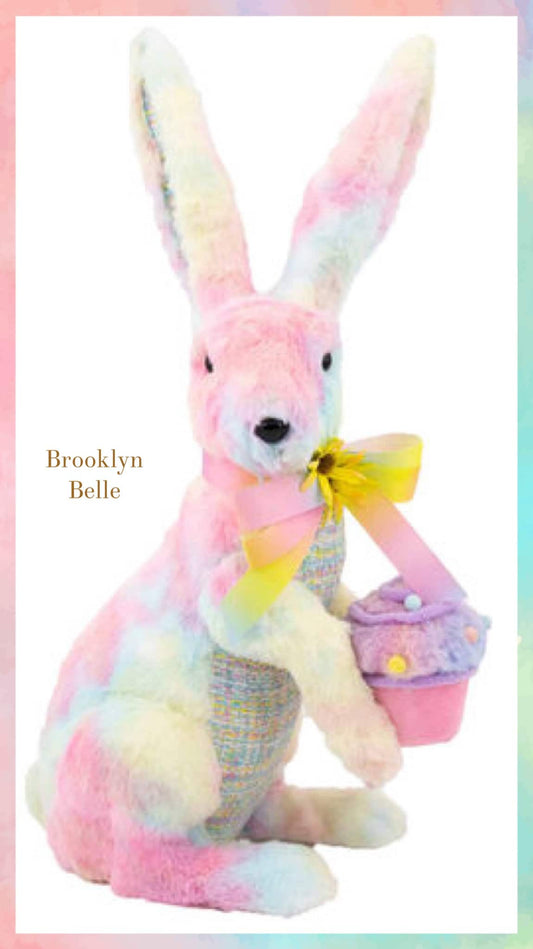 Rainbow Cotton Candy Pastel Bunny with Eggs