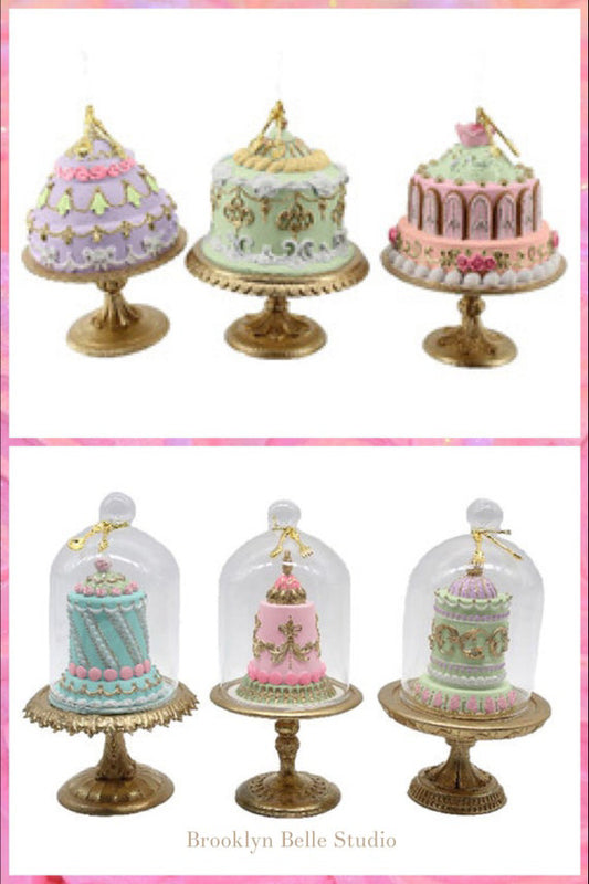Set Of 3 Pastel Cake Ornaments. December Diamonds Ornaments