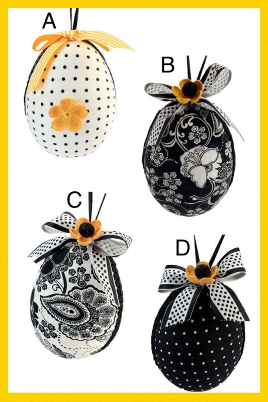 Set of 4 December Diamonds Black and White Easter Egg Ornaments