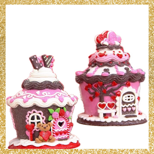 Valentine's Day Cupcake Houses Set of 2 Illuminated Cupcake Houses