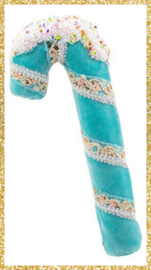 8" December Diamonds Teal Blue Candy Cane with Snow