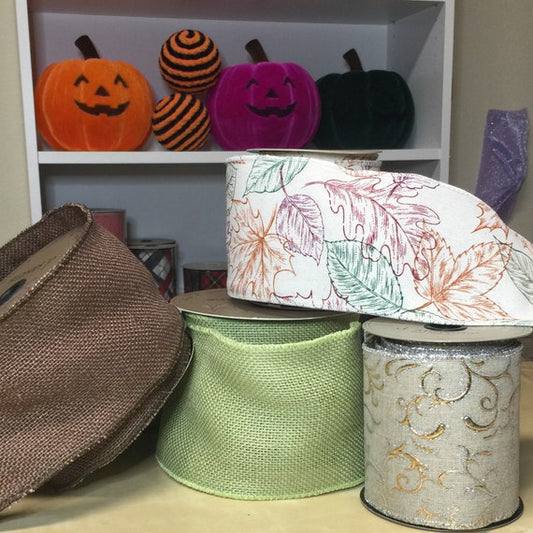 2.5" Green Burlap Ribbon. wired d. stevens ribbon