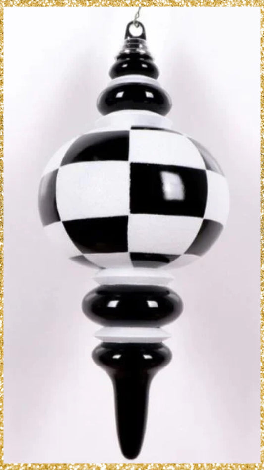 Set Of 2 Black and White Checker Finial Ornaments Black and White Glitter Ornaments