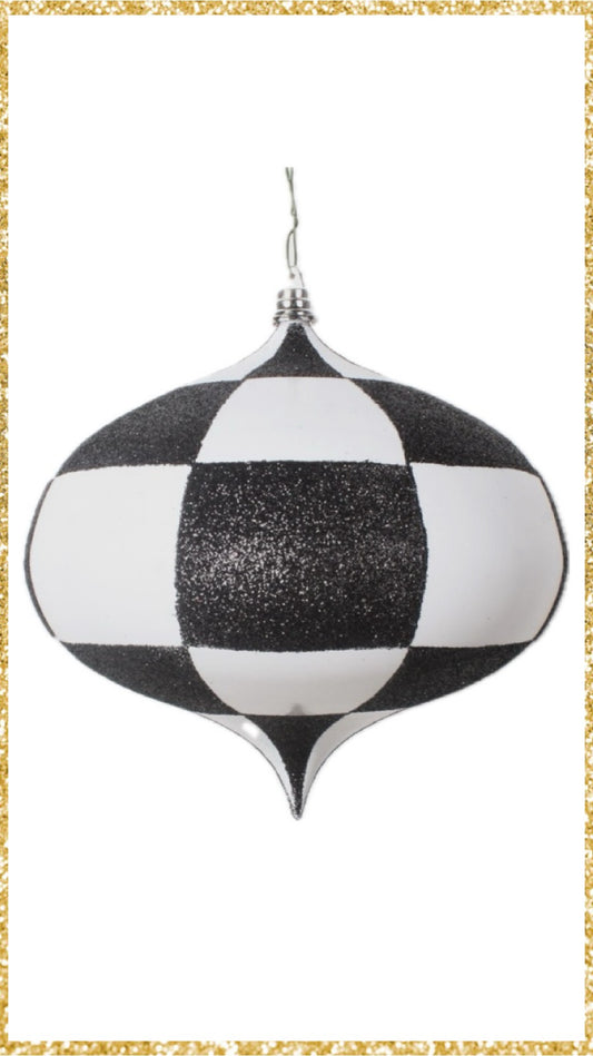 Set of 2 Black and White Checker Kismet Ornament Black and White with Glitter Ornament