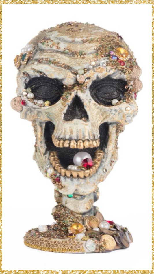 Katherine's Collection Treacherous Treasure Tall Jewel Encrusted Skull Tabletop Katherine's Collection Halloween Jeweled Skull