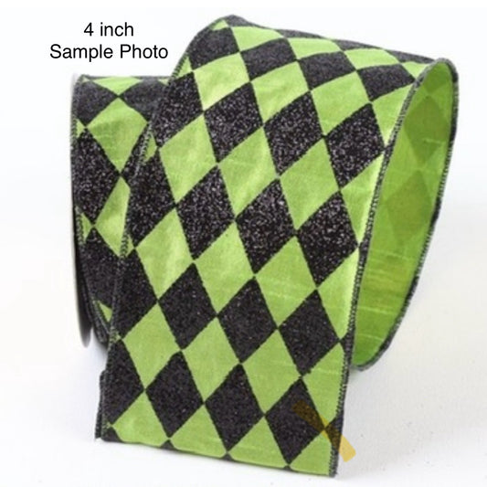 Lime Green And Black Glitter Spooky Diamonds Ribbon