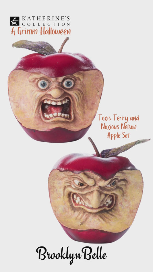 Katherine's Collection Toxic Terry and Noxious Nelson Apples Set of 2 Katherine's Collection Halloween Apple Decorations