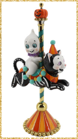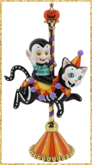 Flocked Black Cat in YELLOW Halloween Pumpkin Jack O Lantern