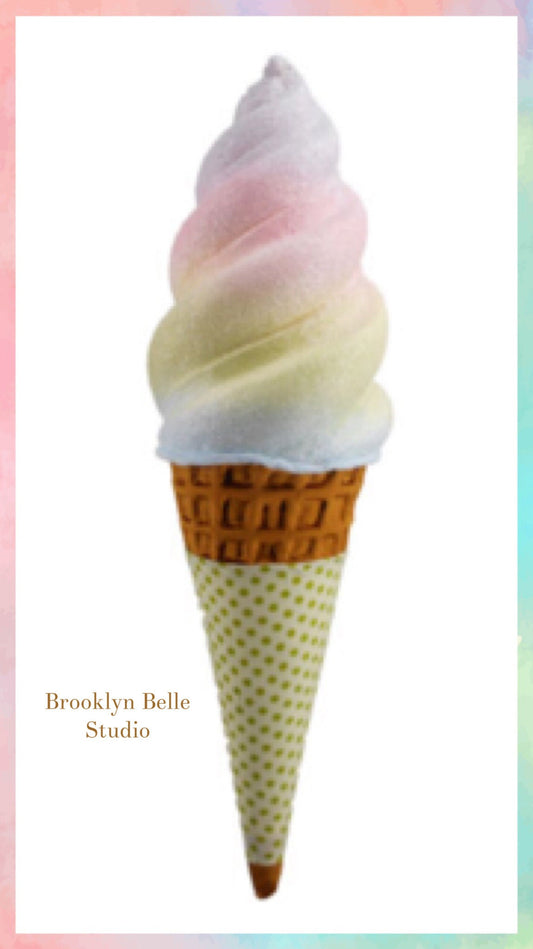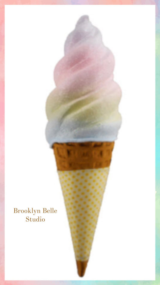 29.5 inch Faux Rainbow Swirl Ice Cream Cone with Yellow Sleeve