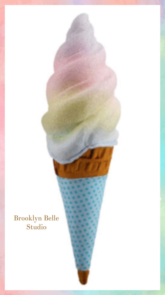 29.5 inch Faux Rainbow Swirl Ice Cream Cone with Blue Sleeve