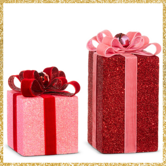 Red and Pink Sparkly Faux Packages Set of 2 Pink and Red Christmas Decorations