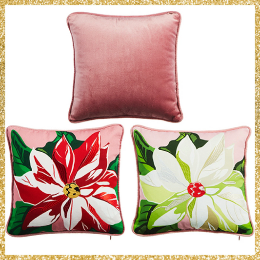 Pink Poinsettia Pillows Set of 2 Pink Christmas Pillows