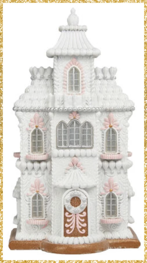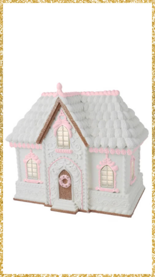 16” Lighted December Diamonds Gingerbread House Decor White and Pink Gingerbread Decor