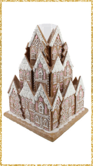 16” Gingerbread Village with candle holder Gingerbread Candle Holder