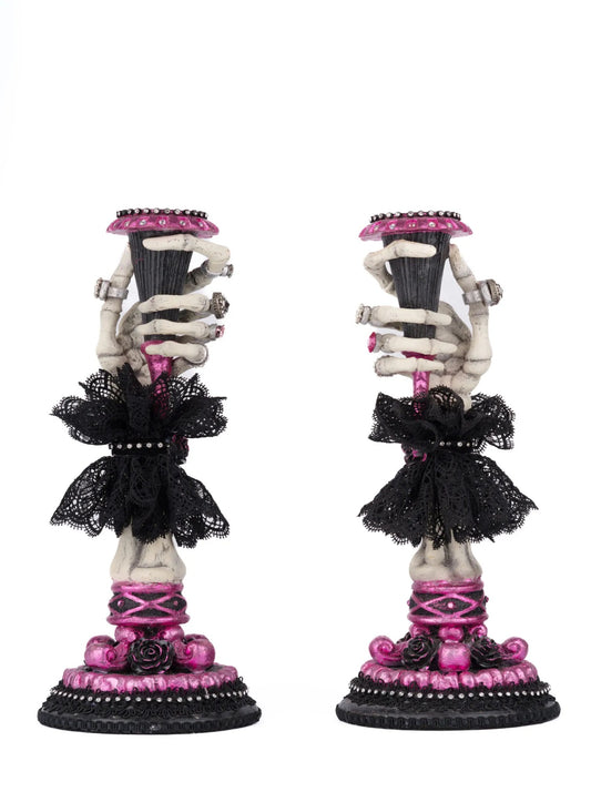 Katherine's Collection Black and Pink Skeleton Hand Candle Sticks Katherine's Collection Halloween Skull Candle Holders