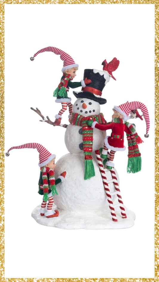 Katherine's Collection Peppermint Palace Elves and Snowman