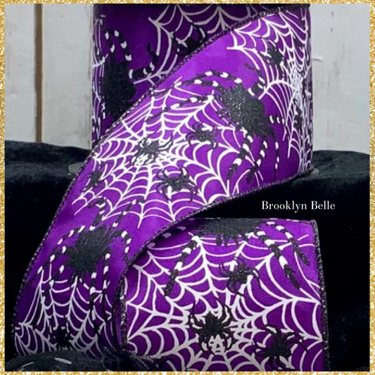10 Yards X 2.5 Inch Purple And Black Glitter Ribbon