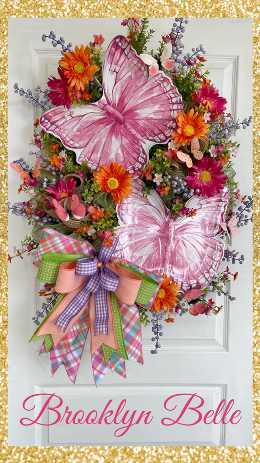 Pink Butterflies Wreath • Butterfly Wall Decor