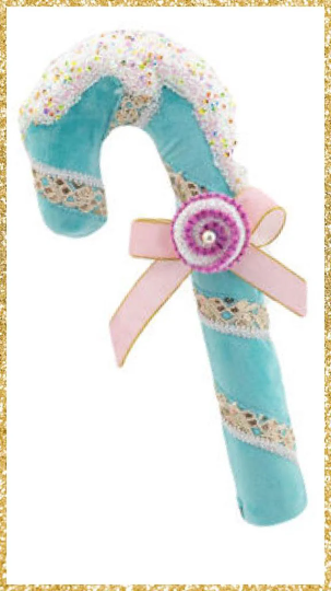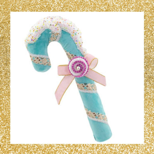 14" December Diamonds Teal Candy Cane with Pink Bow