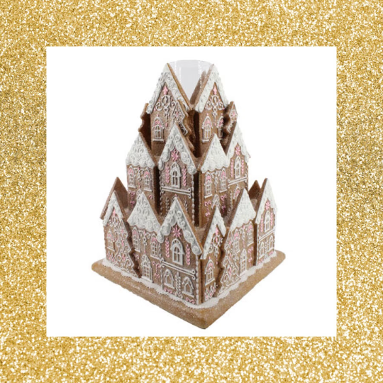 16” Gingerbread Village with candle holder Gingerbread Candle Holder