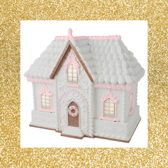 16” Lighted December Diamonds Gingerbread House Decor White and Pink Gingerbread Decor