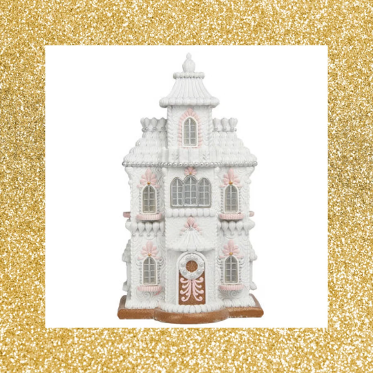 24” LED Lighted White Gingerbread House Decor White and Pink Gingerbread Decor