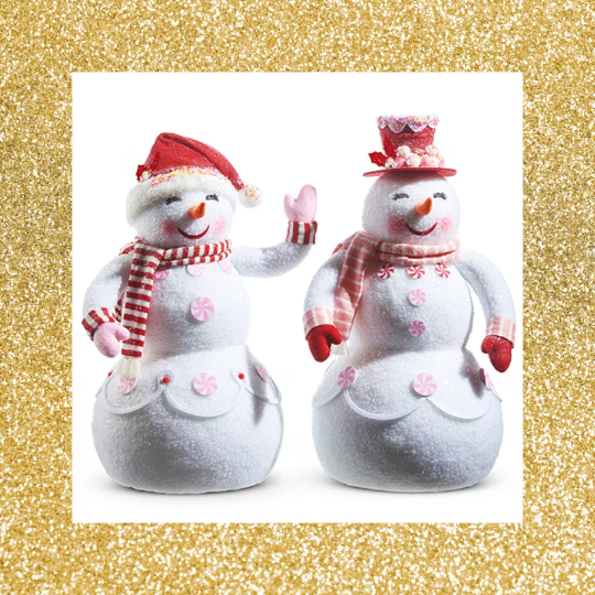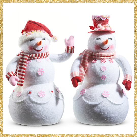 24" Peppermint Snowmen Christmas Decoration Set of 2 Christmas Snowman Decorations