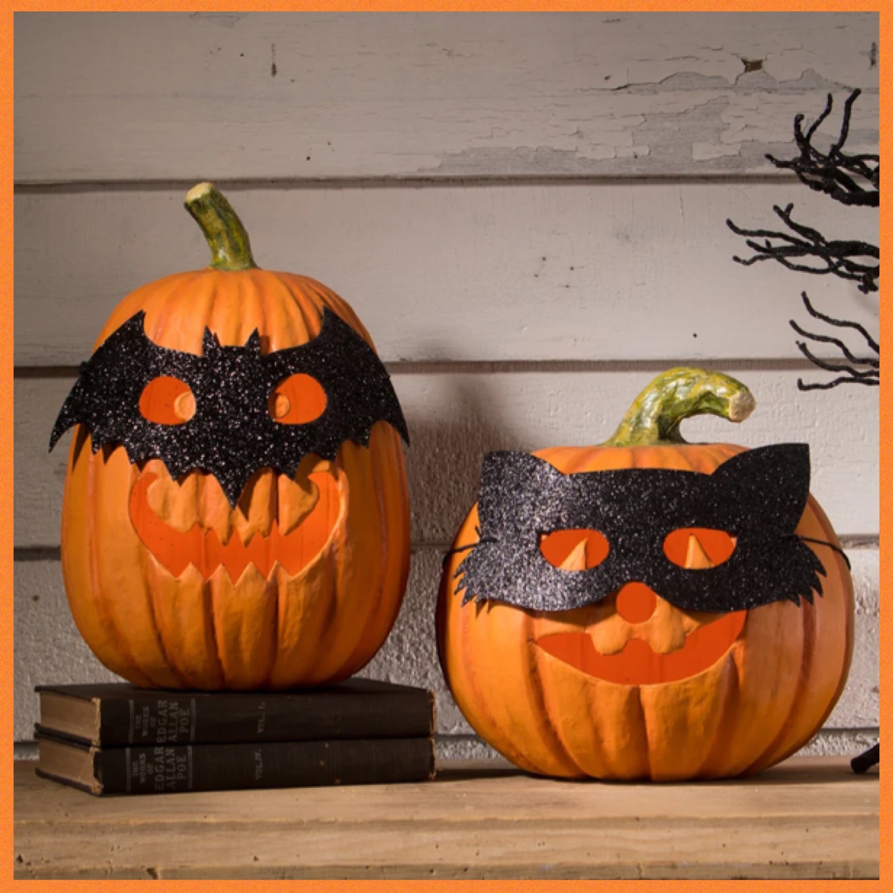 Bethany Lowe Bat Masquerade Pumpkin Orange Jack O' Lantern Bethany Lowe Halloween Orange Bat Pumpkin Decoration