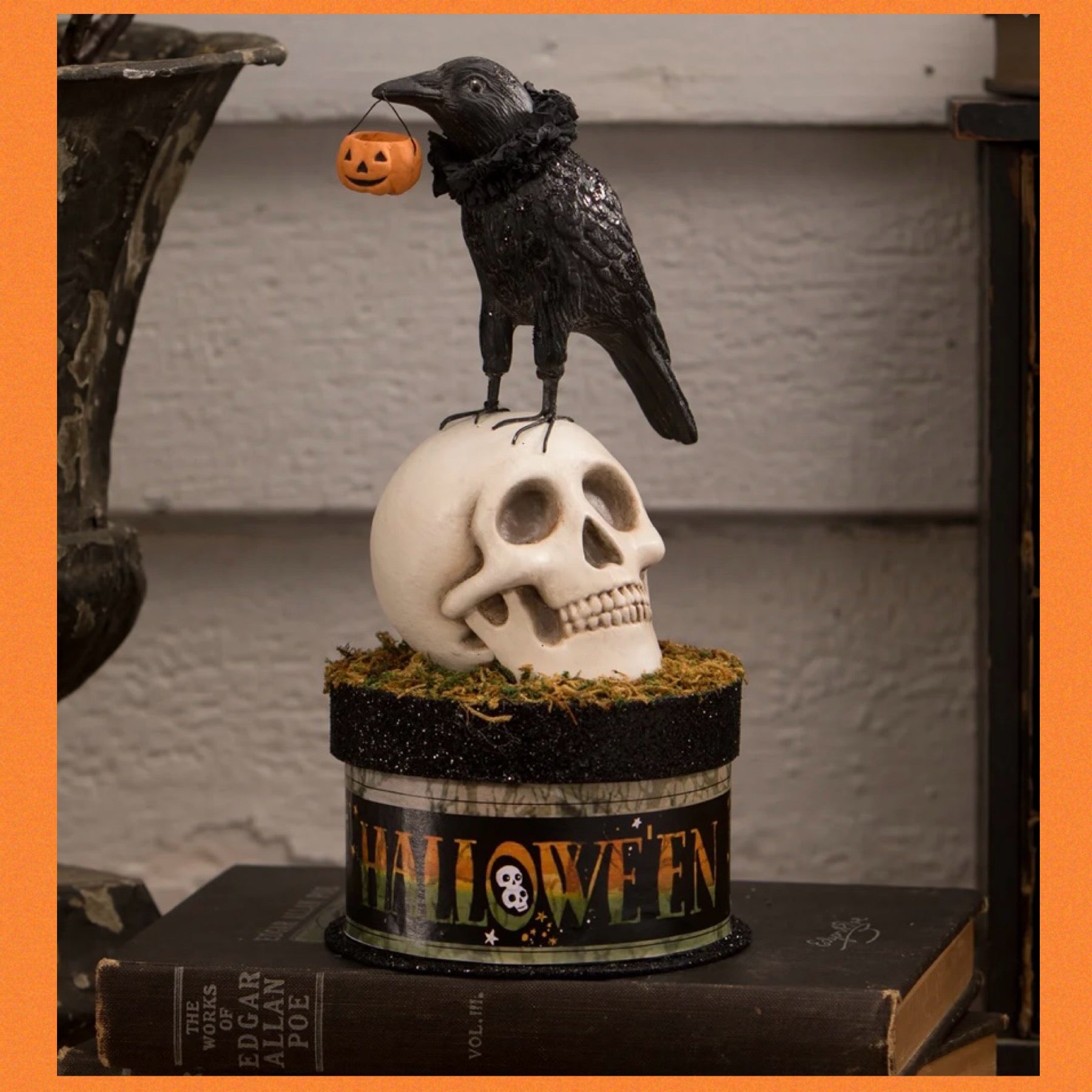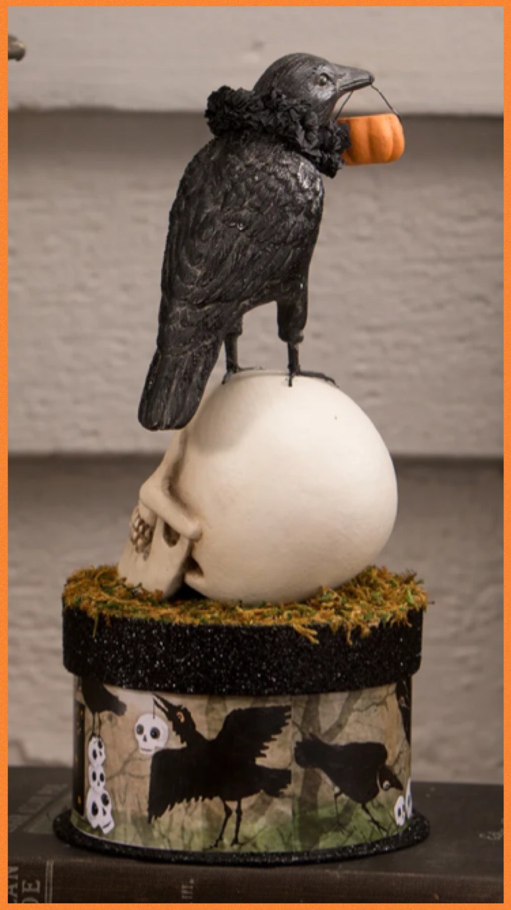 Bethany Lowe Crow and Skull on Box Bethany Lowe Crow and Skull on Trinket Candy Box Halloween Decoration
