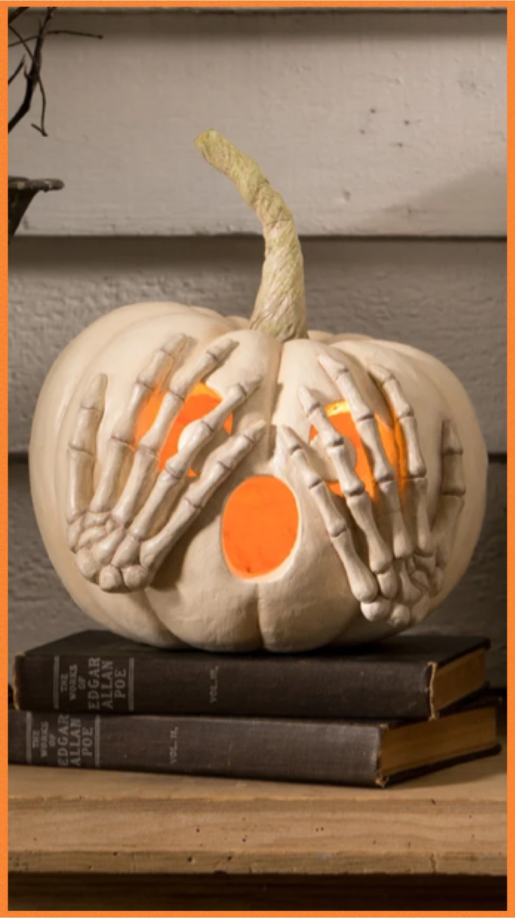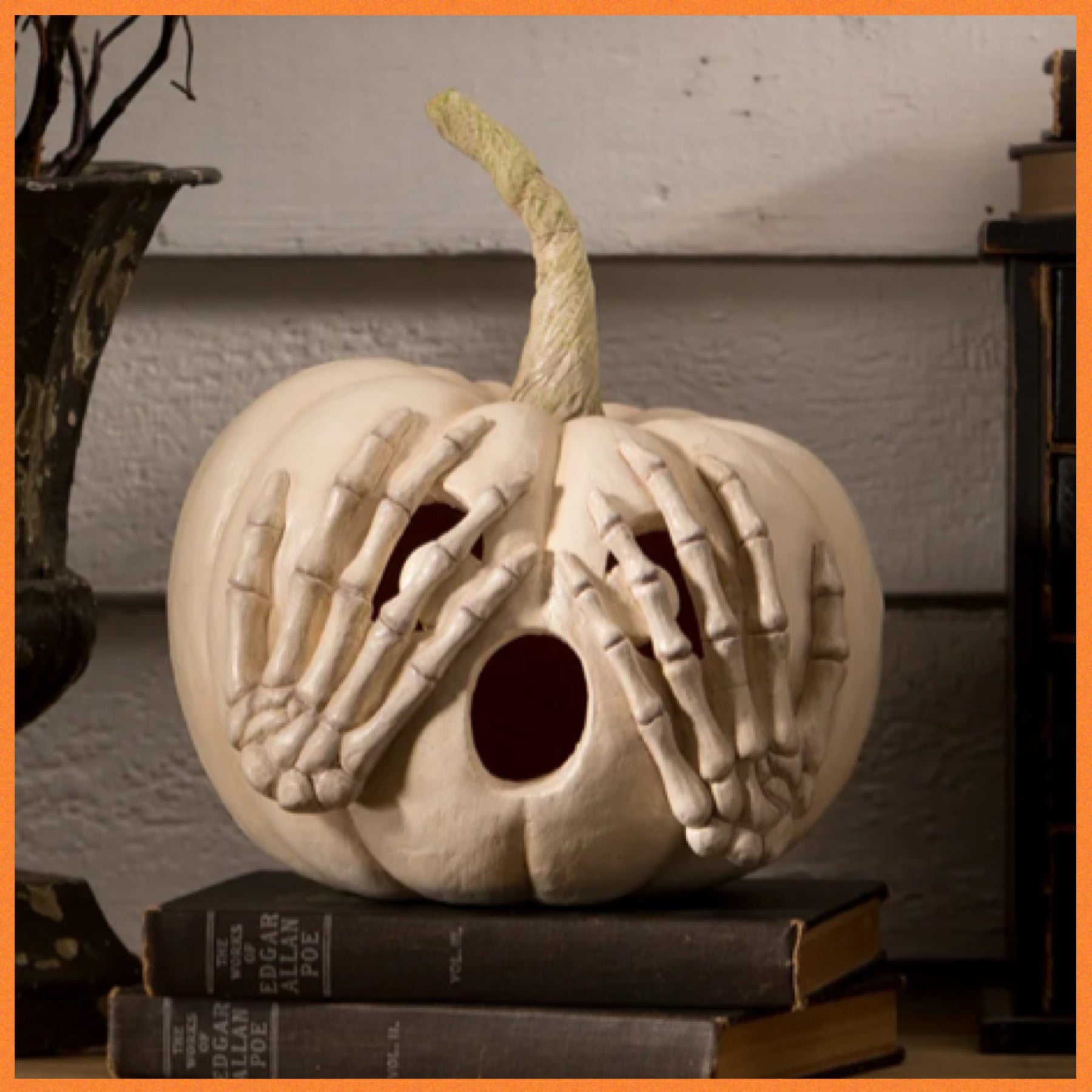 Bethany Lowe Peek a Boo Pumpkin White Jack O' Lantern Bethany Lowe Halloween White Pumpkin Decoration