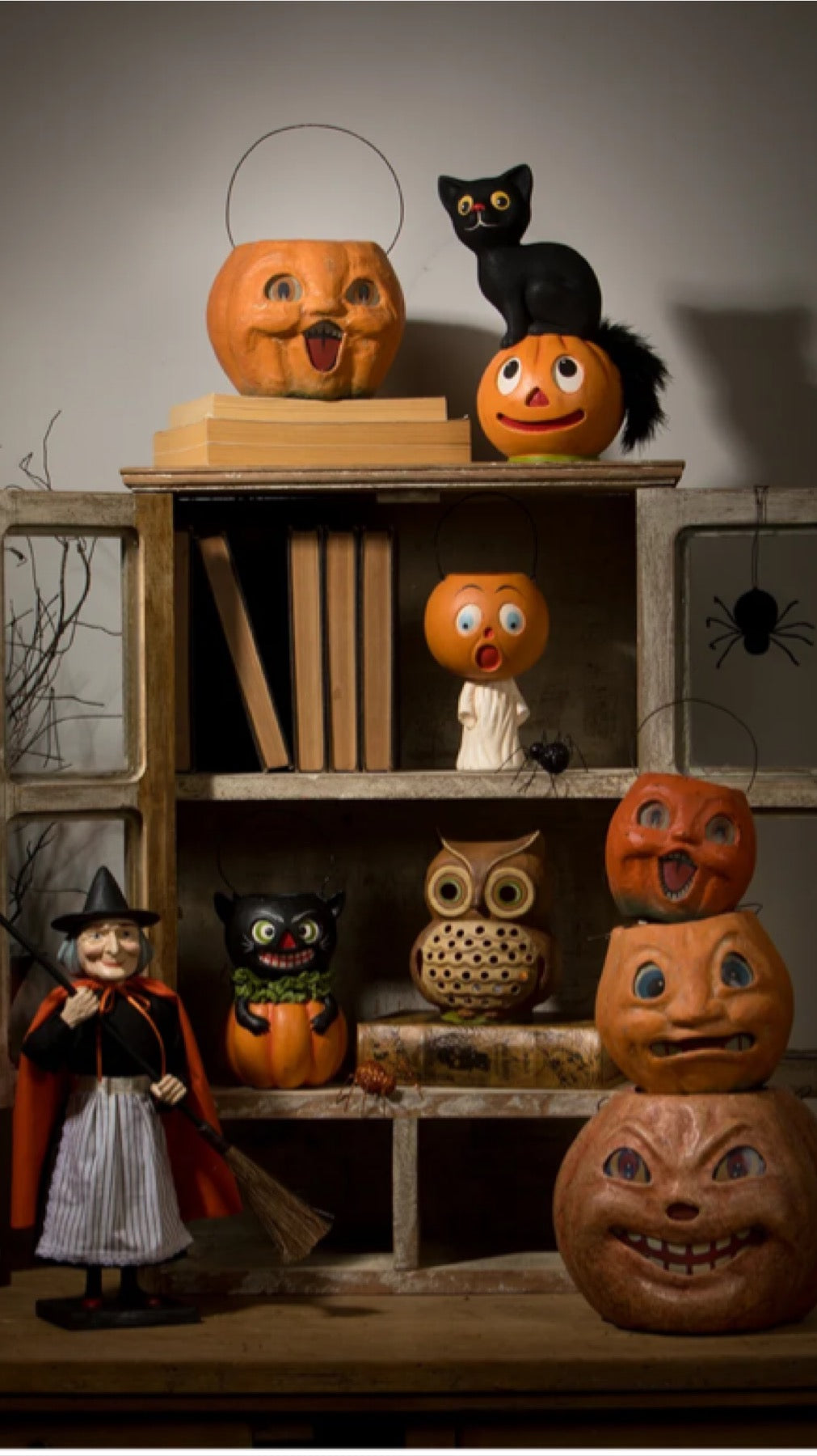 Bethany Lowe Vintage Witch with Broom Container Bethany Lowe Halloween Witch Decoration