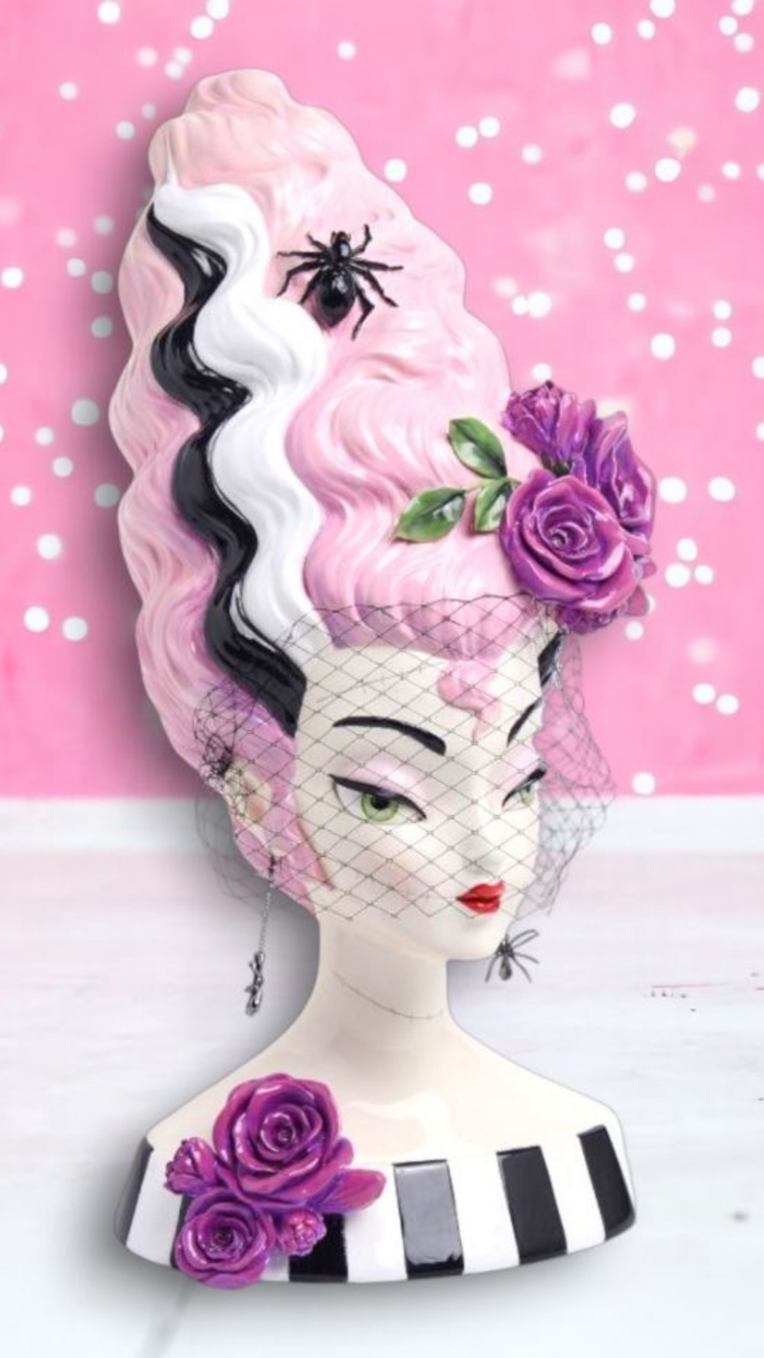 December Diamonds Halloween Monster Bride Bust with Pink Hair