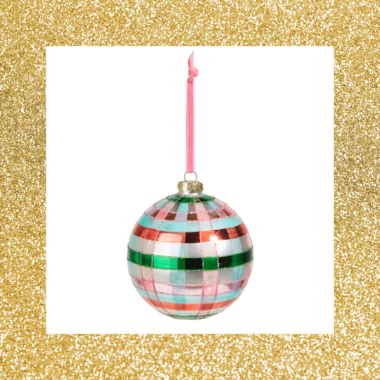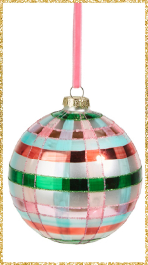 Green and Pink Plaid Glass Ornament 5" Pink Christmas Ornament
