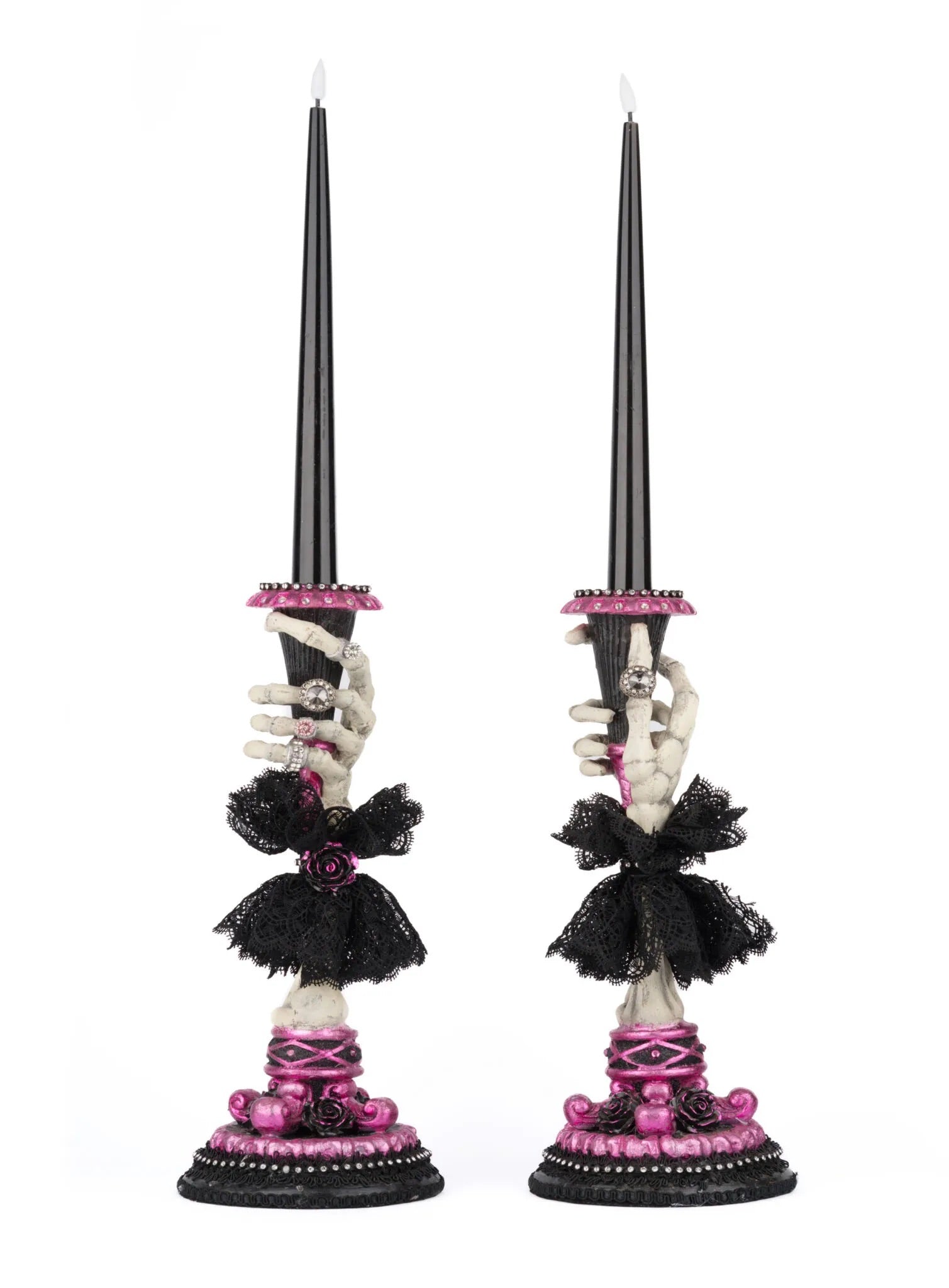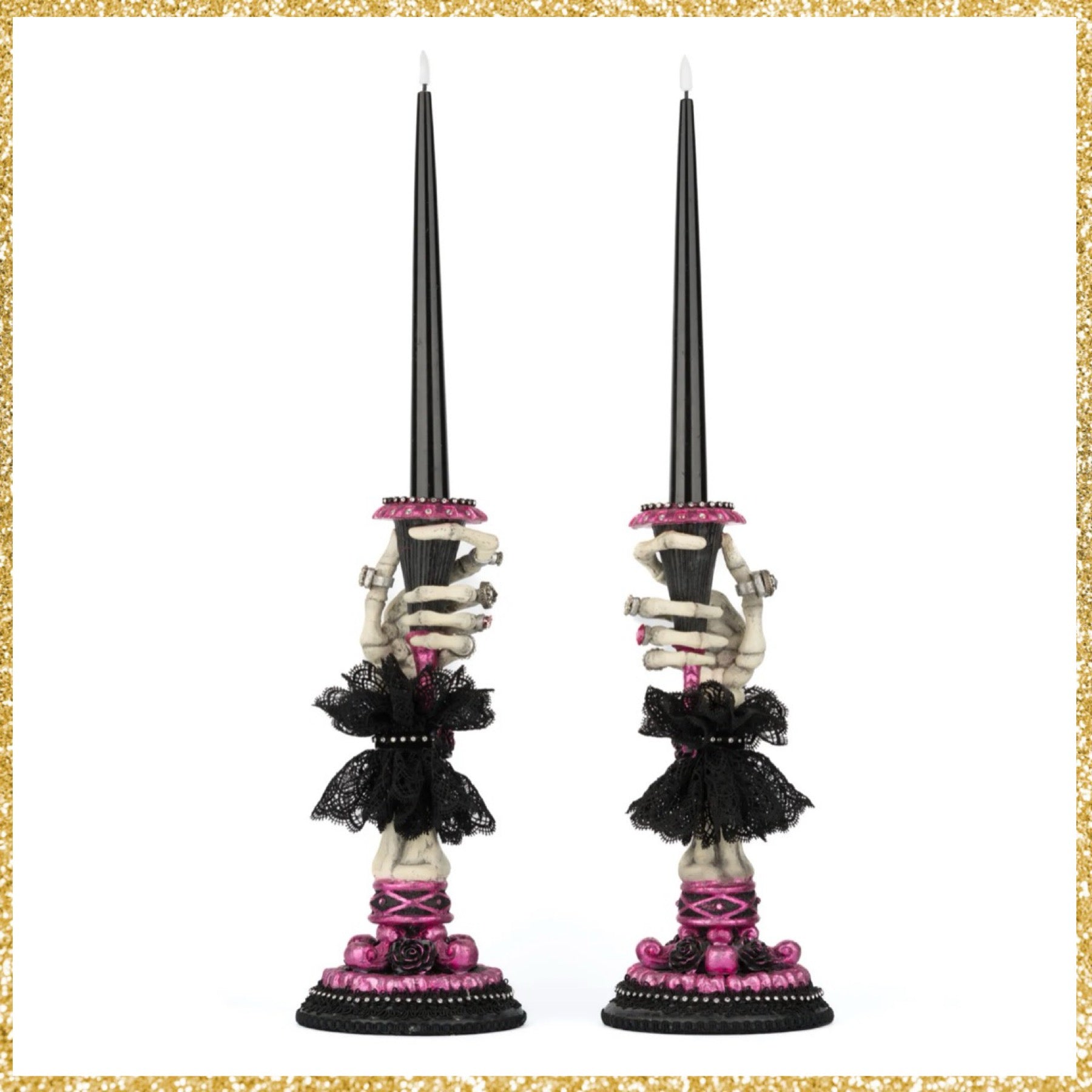 Katherine's Collection Black and Pink Skeleton Hand Candle Sticks Katherine's Collection Halloween Skull Candle Holders