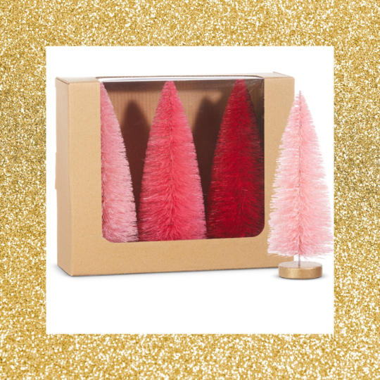 Pink Bottle Brush Trees Box of 3 Pink Christmas Decorations
