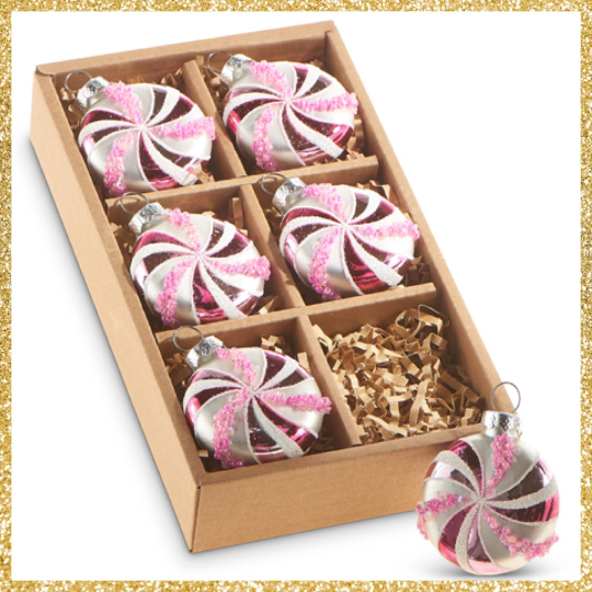 Pink Peppermint Ornament Box of 6 Pink Christmas Ornament