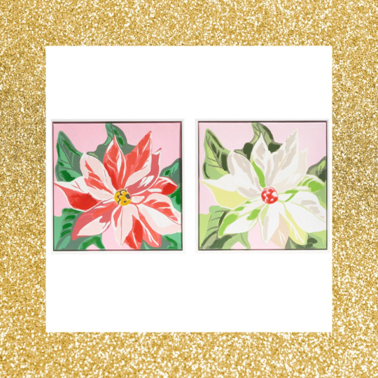 Pink Poinsettia Art Set of 2 Pink Poinsettia Christmas Wall Art