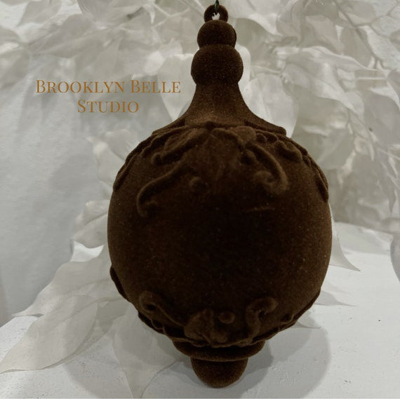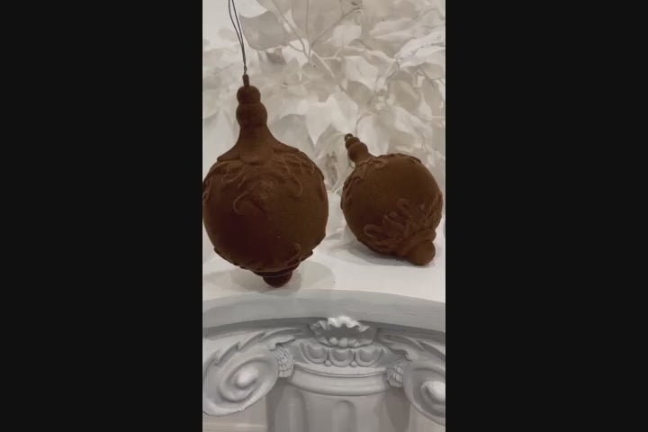 Set Of 2 Chocolate Brown Flocked Drop Finial Ornaments